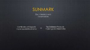 As you are searching for a company you trust, investments you understand and support all in one, Sunmark has the experience and expertise to recommend the best suitable product keeping in mind that a senior is now in a conservative investing position.